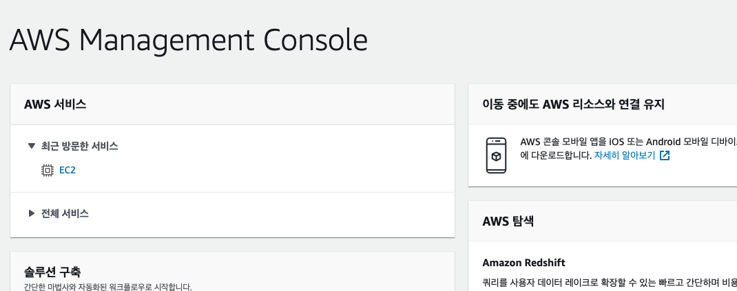 다음 화면 여기서 AWS Console에 들어가서 AWS가 제공하는 편리한 기능들을 하나씩 음미 해보자.