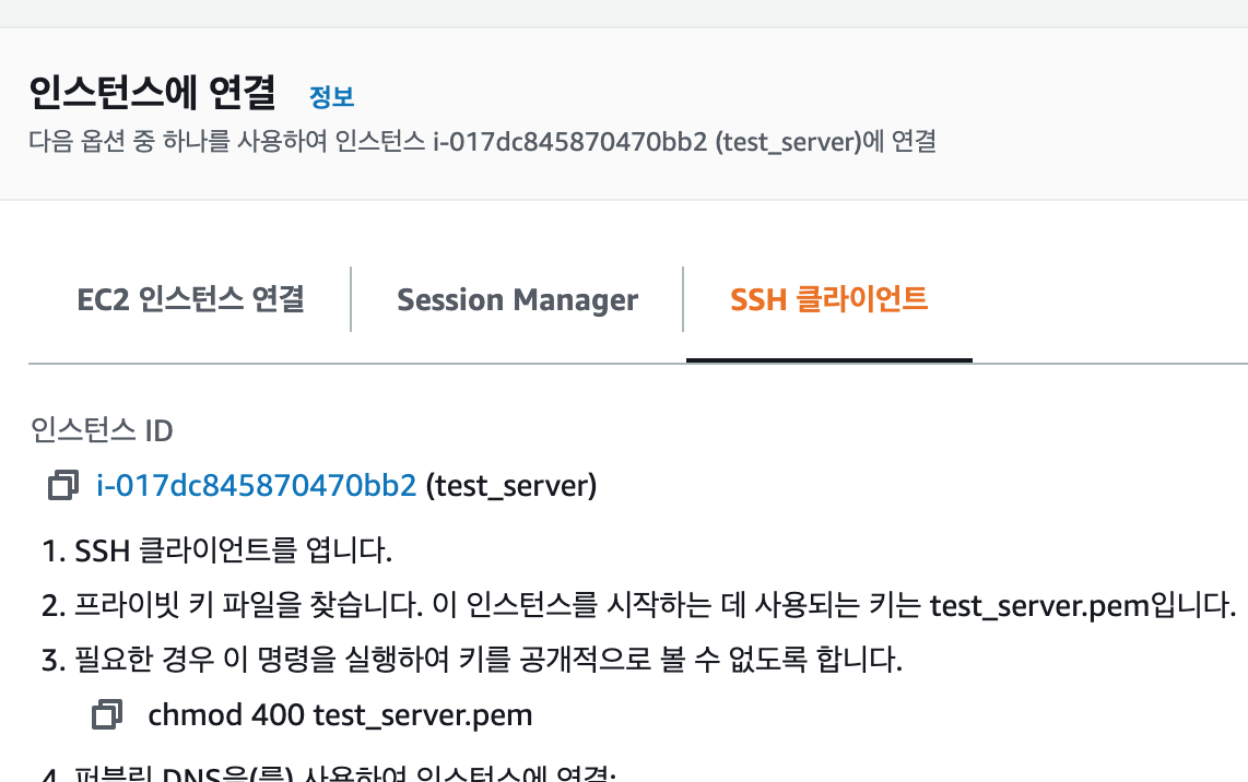 생성된 EC2 인스턴스에서 우클릭을 한 뒤, 연결 탭으로 들어가자