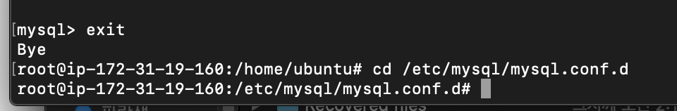 추가로 외부접속 설정위해 mysql.conf파일 있는곳으로 디렉토리 이동